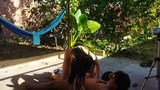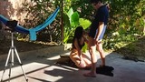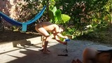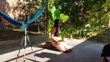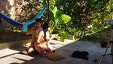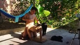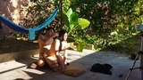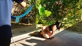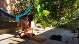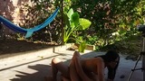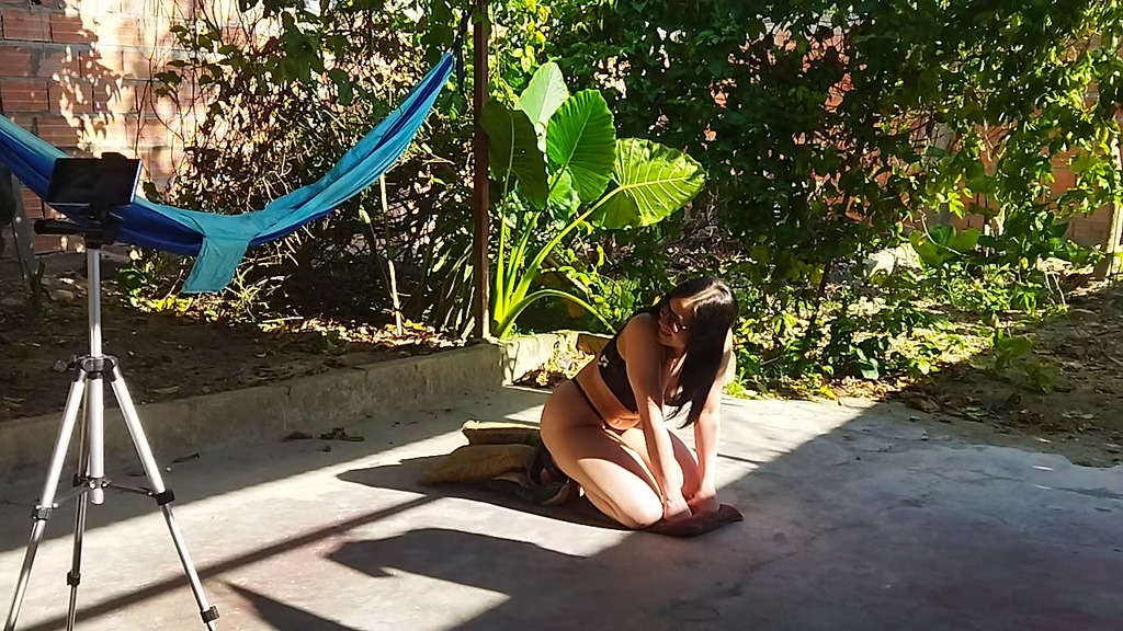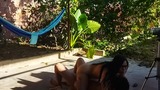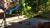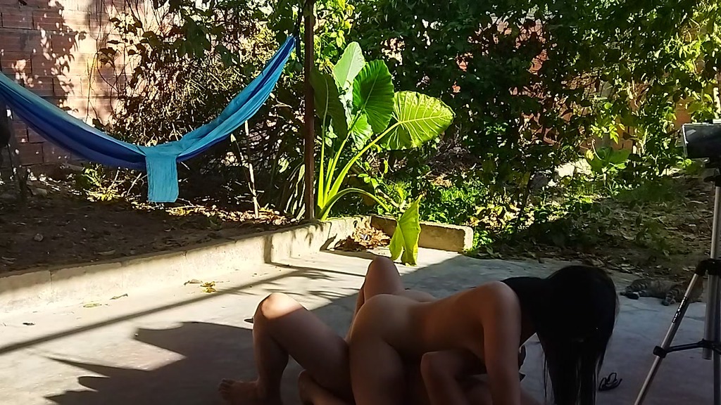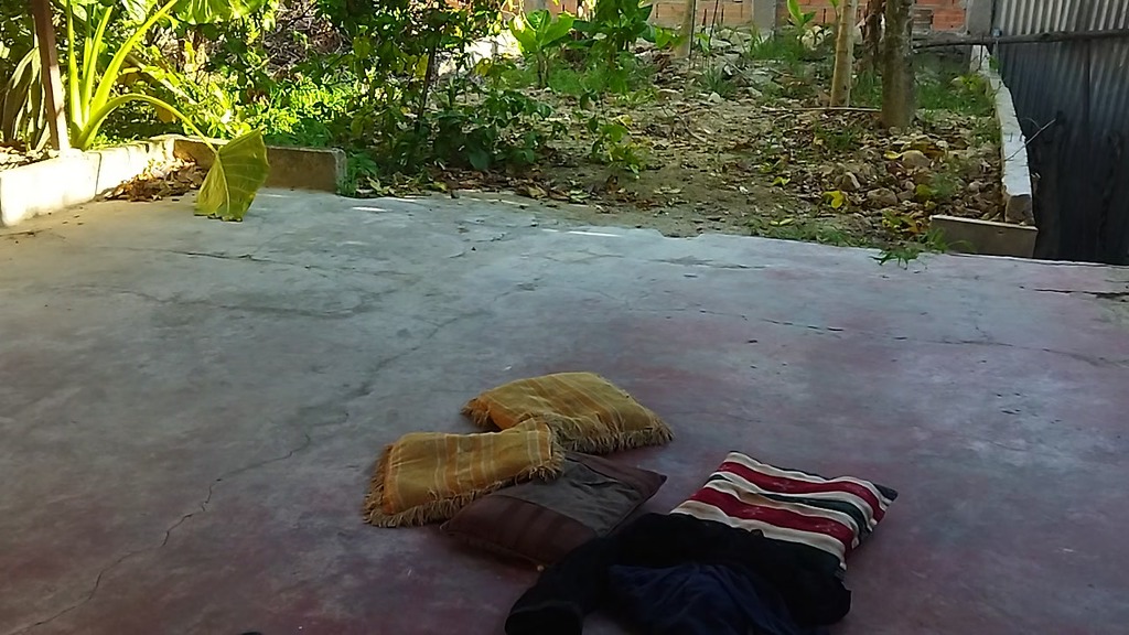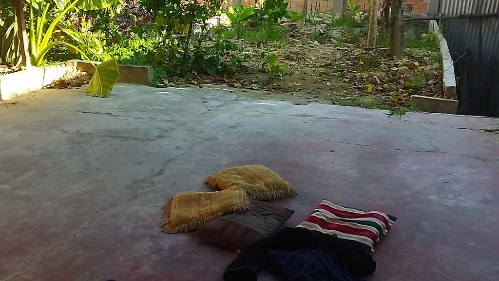 recording with my cousin-in-law in the patio of the house i took my cousin-in-law to the yard to do things.