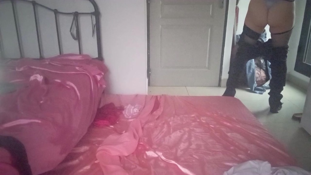 French Whore Clothed-sex in Nightie, satin Panties and lingerie, Heels & Fishnet, Blowjob, RimJob