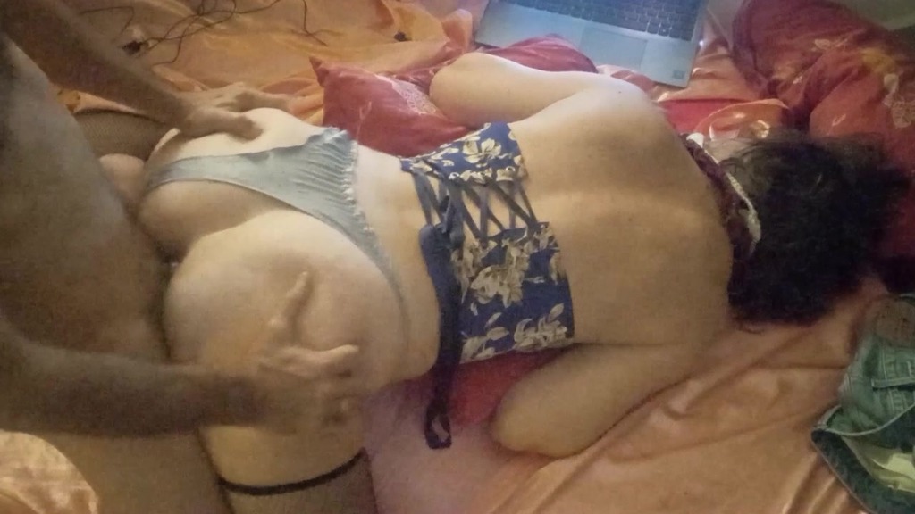 French Whore Clothed-sex in Nightie, satin Panties and lingerie, He