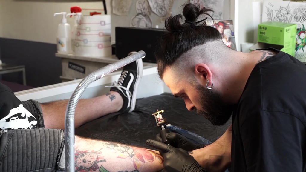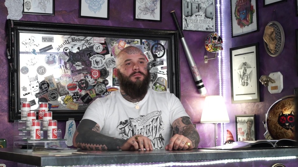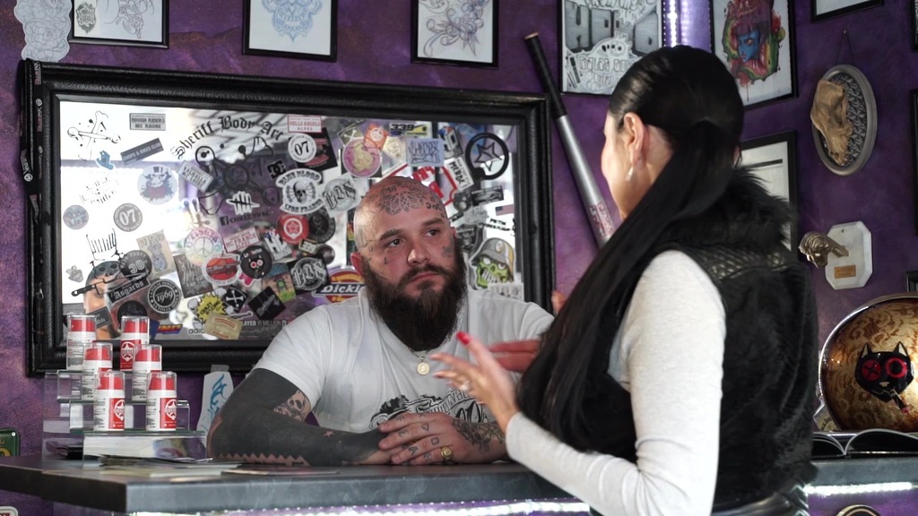Ania Kinski, Renata, in the film Rebel leaves for a road trip she stops in a tattoo shop and gets tattooed to mark her new life, but above all to get screwed in all her holes by Mike Angelo, Speed the tattoo artist