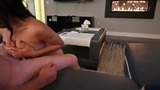 The girl on her knees performs the best handjob and teases before getting a big cum shot on her perfect tits.