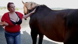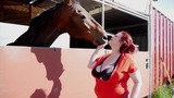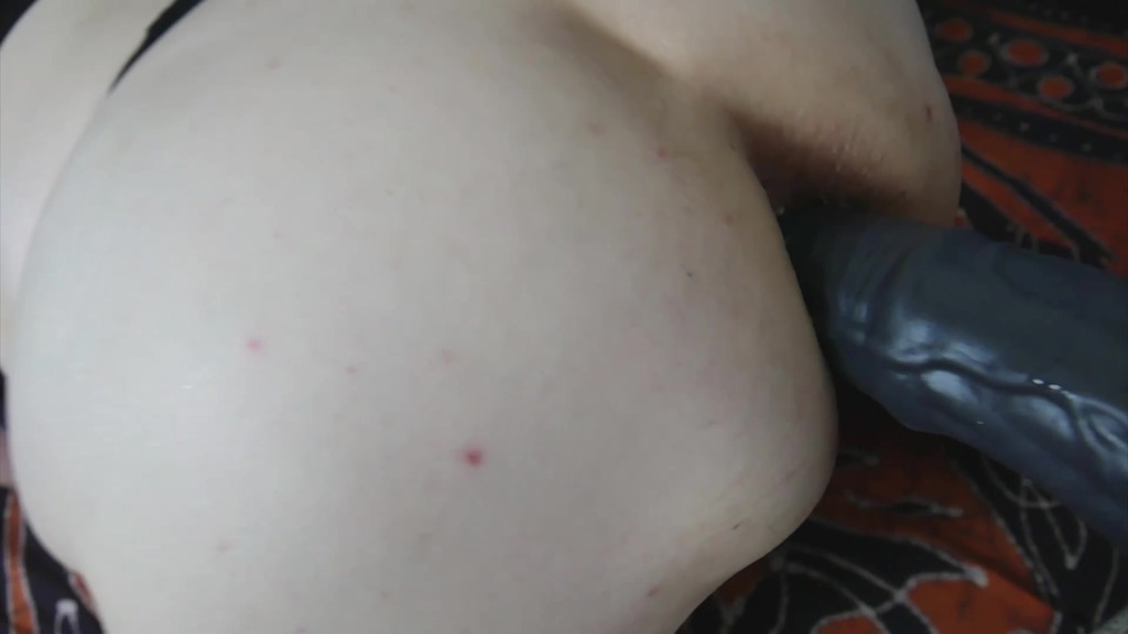 Horny bitch with massive tits spit roasted with a big cock in her mouth and a huge fantasy cock deep in her ass