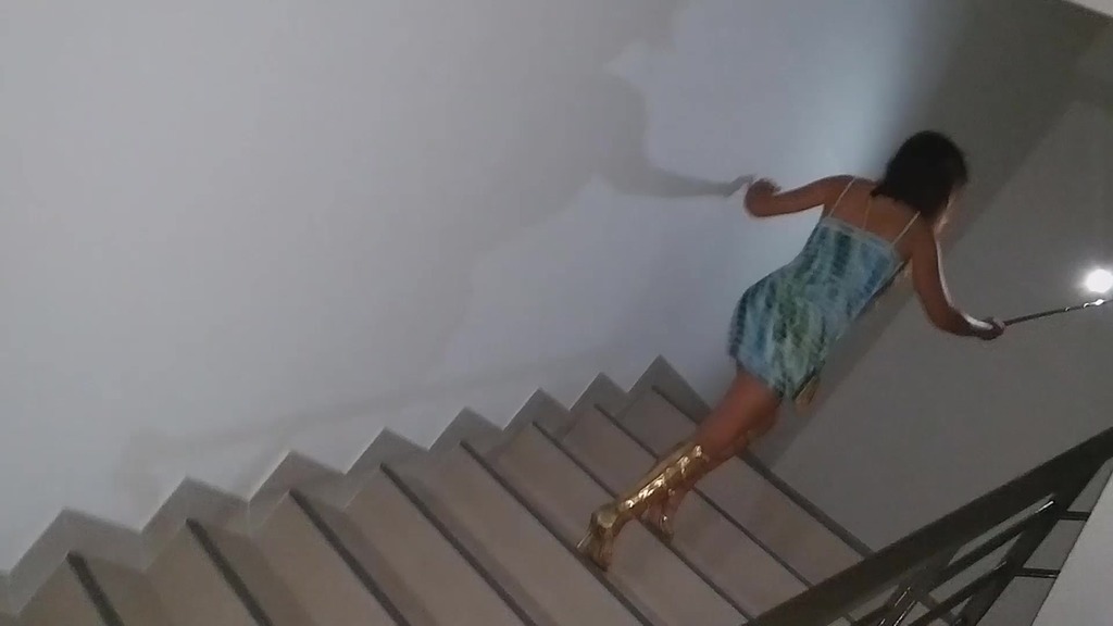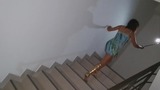 orgasm during dildo riding on stairs