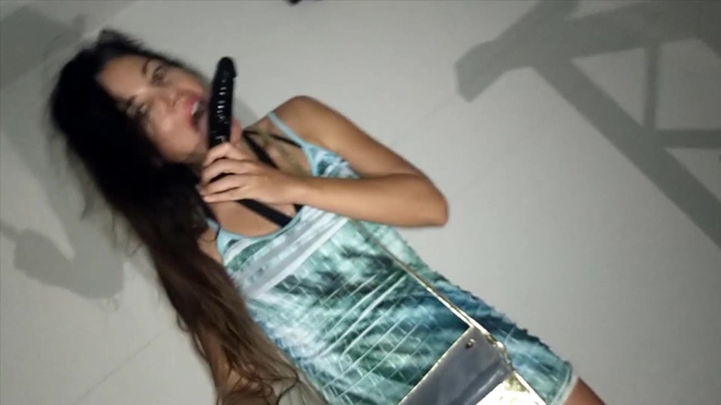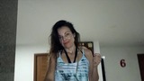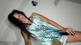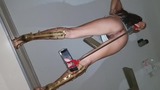 no bra no panties in net dress cleaning kitchen on seifie