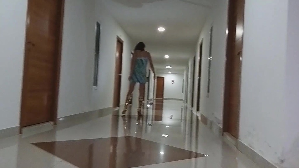 up dress no panties n black dildo riding on hotel corridors